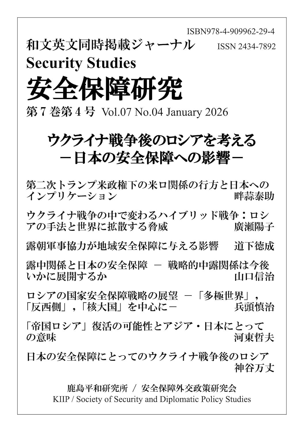 「Security Studies 安全保障研究7-4巻」2026年1月号(ウクライナ戦争後のロシアを考える)