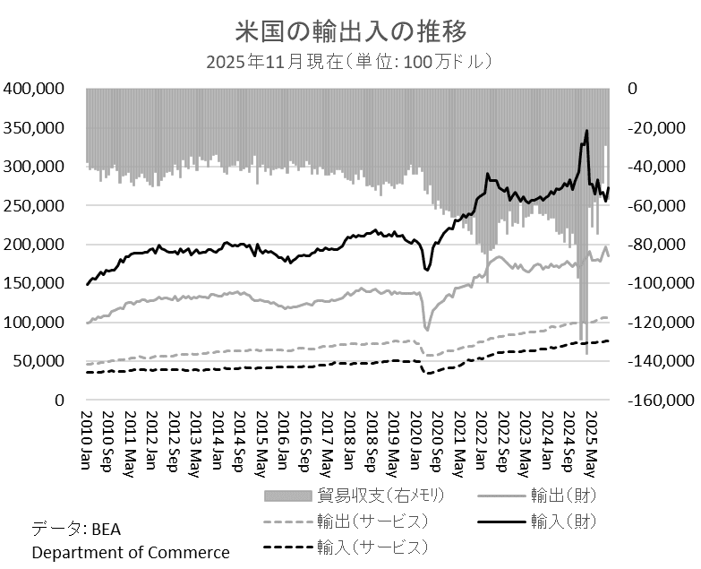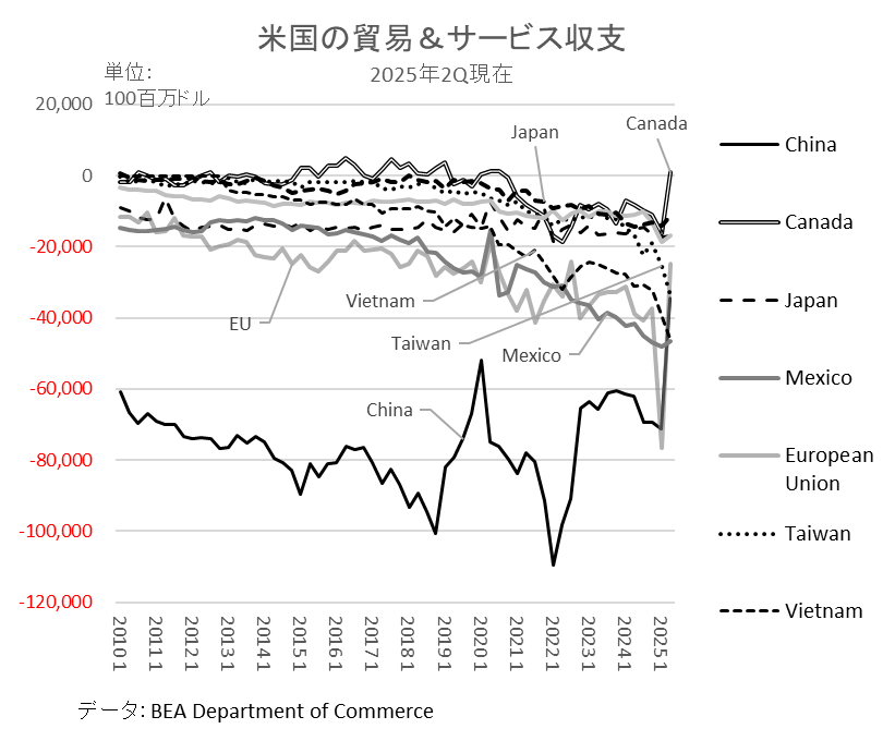 今後政権の思惑通り、海外企業から米国への輸出が、米国現地での生産にシフトするならば海外から米国への直接投資が趨勢的に増加するはずであるが、25年第2四半期までのデータでは海外からの対米直接投資の伸び率に変化は見られない。ただしこの点も現時点で評価するのは時期尚早であろう。